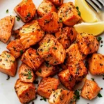 2. In a mixing bowl, toss the salmon cubes with melted butter, lemon juice, and minced garlic until well coated.