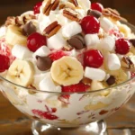 Banana Split Fluff Salad is a must-try dessert that’s both simple and scrumptious. With its combination of fresh fruits, creamy textures, and sweet drizzles, it’s sure to be a hit at any gathering. So, grab your ingredients, get started, and enjoy this delightful treat with family and friends. You won’t be disappointed!