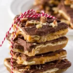 A delightful treat that combines crispy, salty crackers with a rich toffee and chocolate topping, perfect for holiday gatherings.