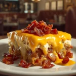 A deliciously indulgent breakfast casserole combining sausage, bacon, cheese, and hash browns, perfect for brunch or family gatherings.