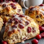 Delightful scones balancing tart cranberries with sweet maple syrup and vibrant orange zest, perfect for breakfast or an afternoon snack.