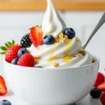 - In a bowl, mix the yogurt, sweetener, and vanilla extract until well combined.