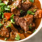 Serve the stew hot, garnished with fresh herbs if desired. Enjoy the delightful aroma and the inviting warmth of this hearty meal.