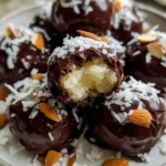 Dip each coconut ball into the melted chocolate to coat thoroughly, then return to the baking sheet. This chocolate layer adds a decadent finish to your homemade Almond Joys.