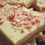 - Sprinkle the crushed peppermint candies over the white chocolate layer, pressing them in lightly.