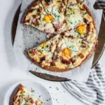 A delightful twist on traditional breakfast fare, this Keto Breakfast Pizza combines creamy cheeses, savory bacon, and fluffy scrambled eggs atop a soft crust, making it a perfect keto-friendly start to your day.