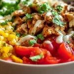 In a large bowl, combine the cooked brown rice or quinoa with a rinsed and drained can of black beans, 1 cup of corn (either frozen or canned), and 1 cup of diced tomatoes. Toss everything together and season with any remaining spices. Divide this mixture into individual bowls, and top with the sliced chicken, diced avocado, shredded lettuce, and a generous scoop of salsa. Garnish with fresh cilantro if desired. Serve immediately and enjoy the explosion of flavors!