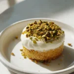 Mafroukeh is a delightful Middle Eastern dessert made from a creamy semolina base, topped with pistachios and coconut, offering a flavorful and textural experience.