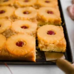 Pour the batter over the beautifully arranged pineapple and cherries in the pan. Bake for about 30-35 minutes, or until a toothpick inserted into the center comes out clean. You’ll know it’s done when the top turns a lovely golden brown.
