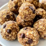 Delicious no-bake protein balls made with peanut butter, honey, and chocolate chips, perfect for a quick snack or breakfast on the go.