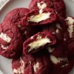 These Red Velvet Cookies are a wonderful blend of festive colors and flavors, making them perfect for any celebration. The cookies are soft and chewy, bursting with a rich red hue that mirrors the traditional red velvet cake. When you bite into them, the luscious cream cheese filling melts in your mouth, adding a tangy sweetness that balances the cookie’s sweetness. This combination is not only visually appealing but also offers a deliciously rich and satisfying dessert experience.