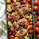 Delicious Sheet Pan Greek Chicken with colorful vegetables