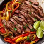 Steak fajitas are a vibrant and flavorful Tex-Mex dish featuring marinated flank steak, colorful bell peppers, and onions, wrapped in warm tortillas.