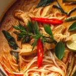 Thai Red Curry Noodle Soup is a delightfully comforting dish that captures the vibrant flavors of Thai cuisine in a warm, soothing bowl. With its rich coconut milk base infused with aromatic red curry paste, this soup delivers a burst of flavor with every spoonful. It’s packed with tender chicken, fresh vegetables, and silky rice noodles, making it a perfect meal for any time of the year.